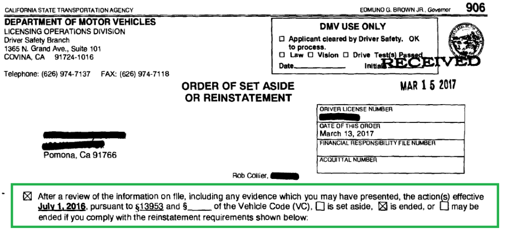 When we had collected our affirmative evidence, we contacted the DMV and used a particular section of the Vehicle Code to request the DMV re-open the matter. Our request was granted and a new interview date was set.