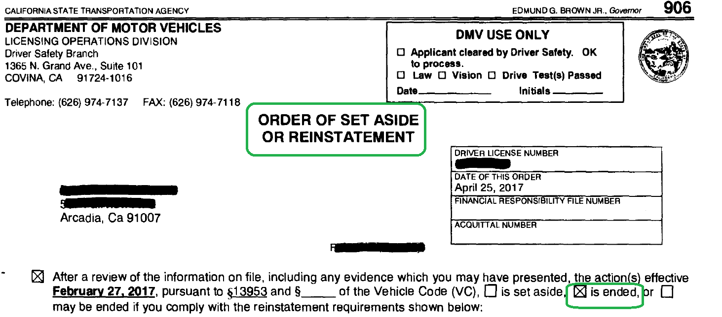 DMV Win at a Lapse of Consciousness Hearing at the Covina DSO